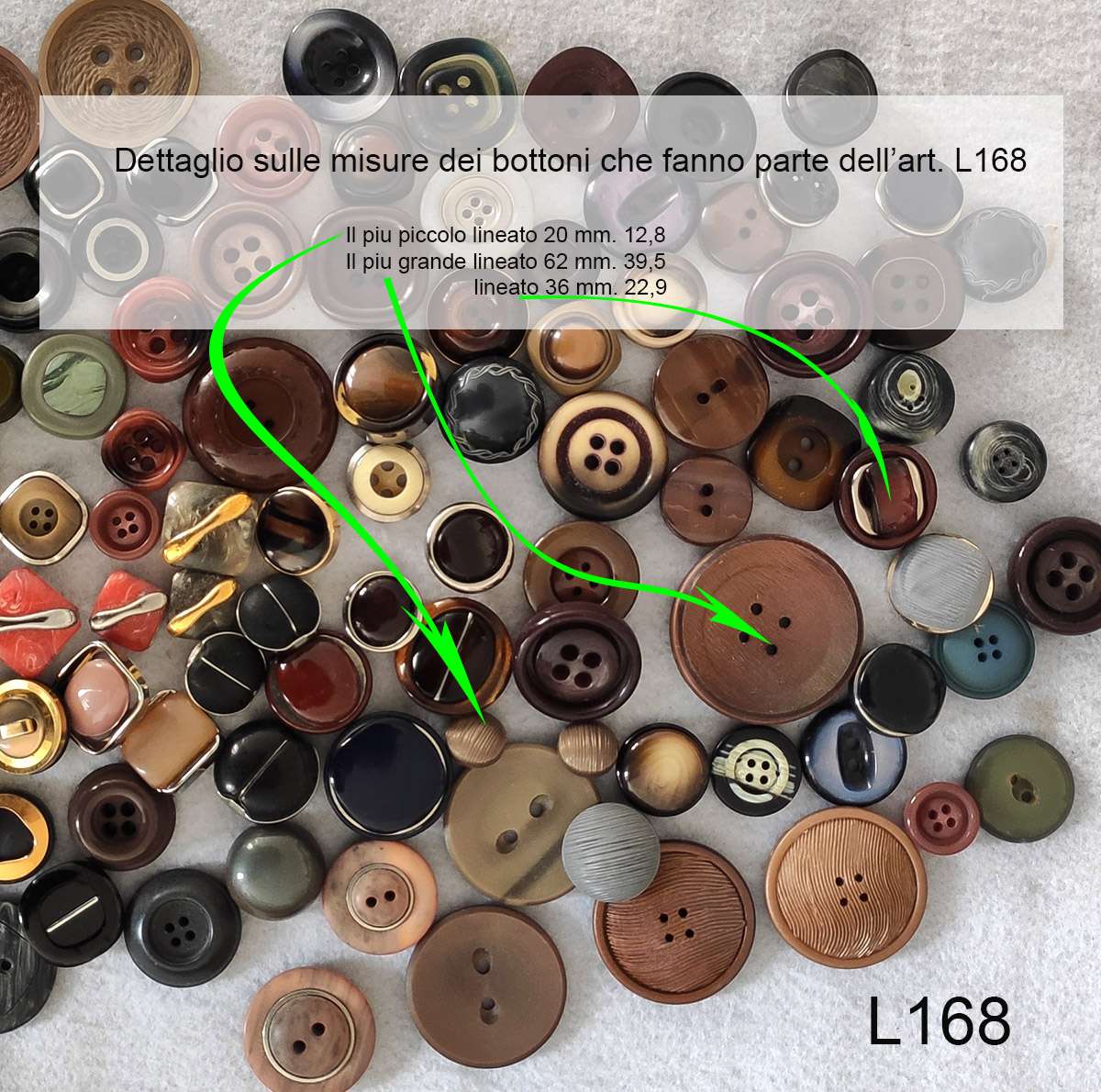 I bottoni che si possono vedere nelle foto di riferimento sono in realtà i bottoni che troverete nel lotto acquistato.