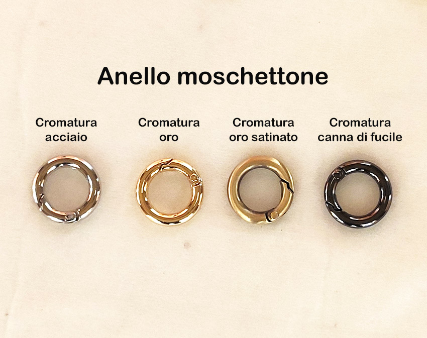Anello moschettone per agganciare catene, piccoli manici di borse o da usare in bigiotteria per bracciali, collane ecc.ecc. – Questo articolo in lega metallica di ottima qualità, dal design decisamente classico e minimale è utilissimo come agganciatura di tracolle, catene, manici di piccole borse da donna o di bracciali , collari, e bigiotteria in genere.