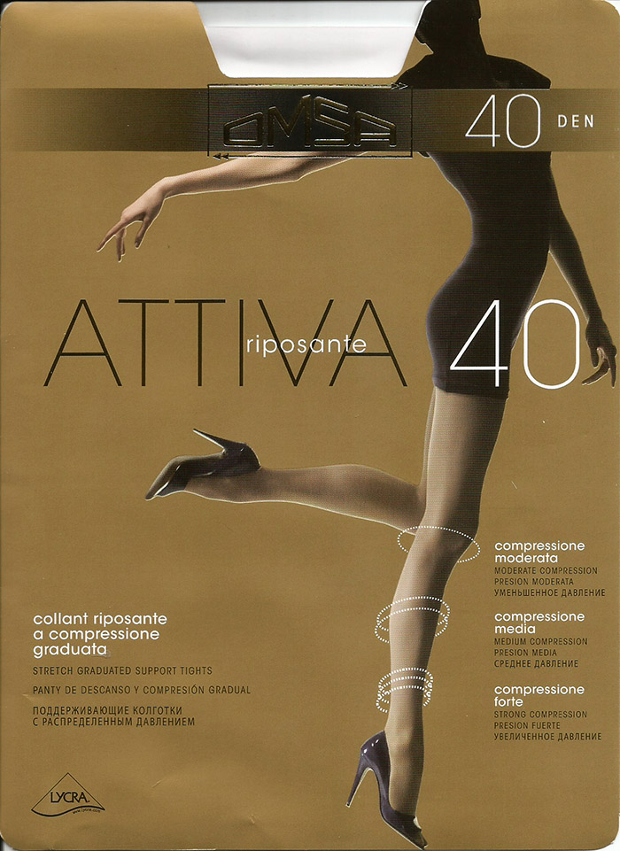 Omsa Attiva 40 den collant riposante a compressione graduata con corpino parigamba, punte rinforzate e tassello