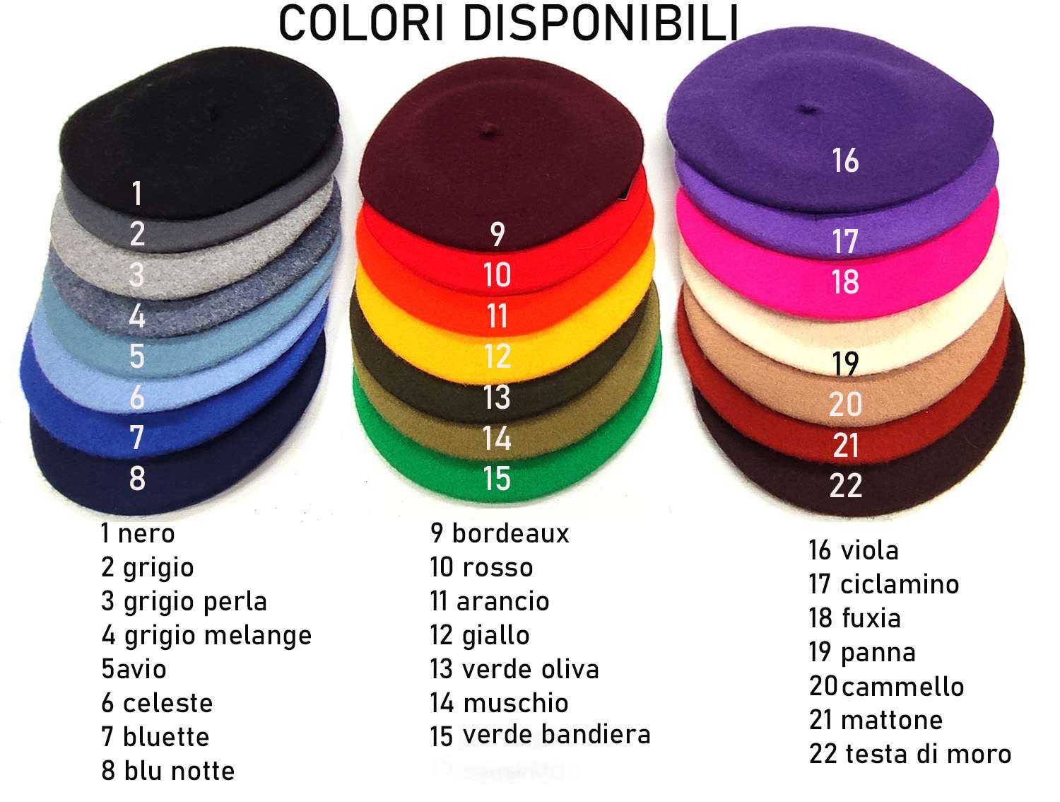 Il Basco francese da donna (basco parigino) è sicuramente bello e caldo. Il basco ha anche tanti altri nomi che lo contraddistinguono come Belza, Coco, Gala, Alice o Colette.