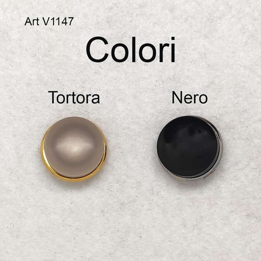 Questo bel Bottone assemblato con una base metallica e una pasticca di resina monocolore per il nero e una sfumata per il tortora. La base metallica color oro per il tortora e color acciaio cromato per il nero, sborda di di un millimetro per dare più valore e lucentezza al bottone