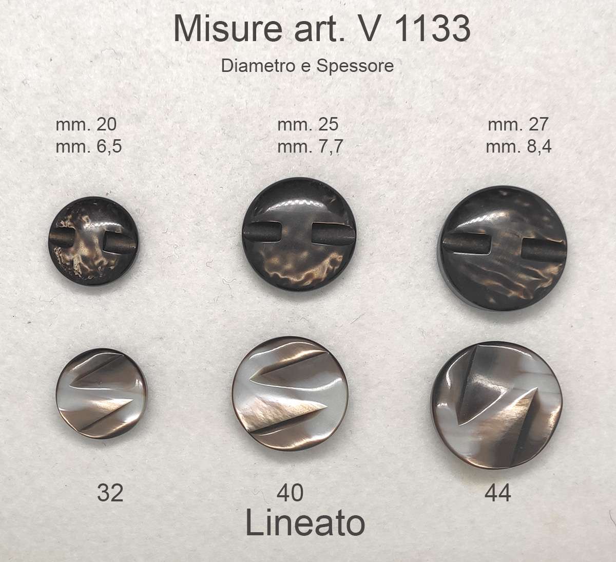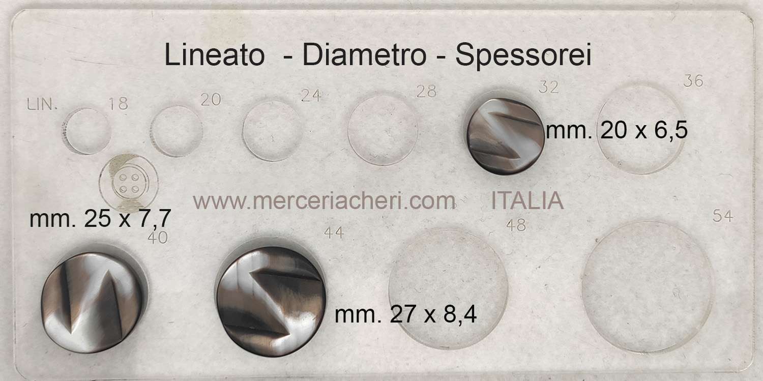 I bottoni venduti nella sezione vintage, sono prodotti nuovi di vendita mai usati ma sono vecchi di fabbricazione. Per tale motivo si possono trovare alcune imperfezioni, qualche micro incisione e qualche traccia di polvere . I piccoli difetti sono tipici dello sbatter dei bottoni fra loro nelle scatole di vendita che sono state maneggiate nel nostro negozio per circa 50/40 anni.