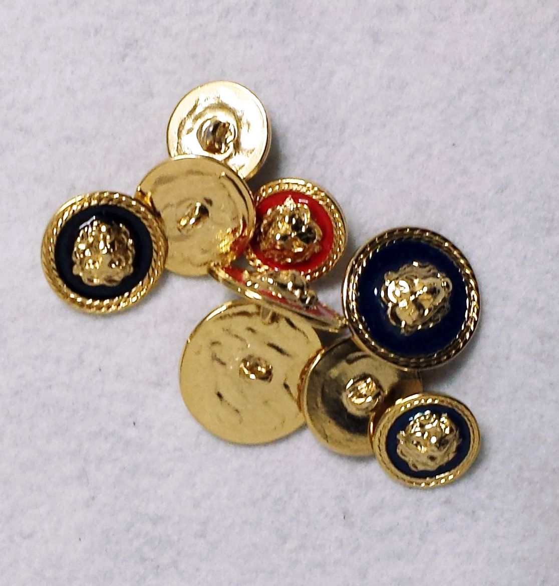 Bottone metallo smaltato con immagine a rilievo raffigurante testa di leone