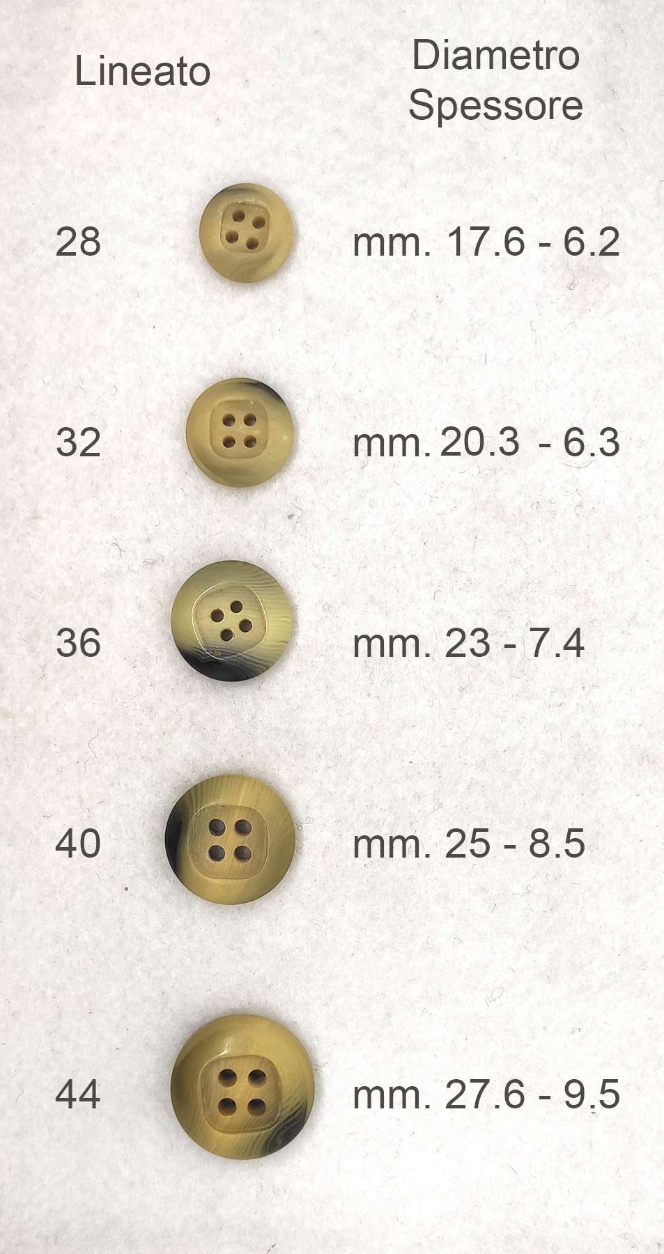 I bottoni venduti nella sezione vintage, sono articoli creati indicativamente nei periodi dichiarati che vanno da fine anni 60 a fine anni 90. Per tale motivo i bottoni possono avere alcune imperfezioni come micro incisioni, patine di ossidazione delle resine (rimovibili facilmente) e/o tracce di polvere. I piccoli difetti sono tipici dello sbatter dei bottoni fra loro nelle scatole di vendita che sono state maneggiate nel nostro negozio per circa 60/50 anni.