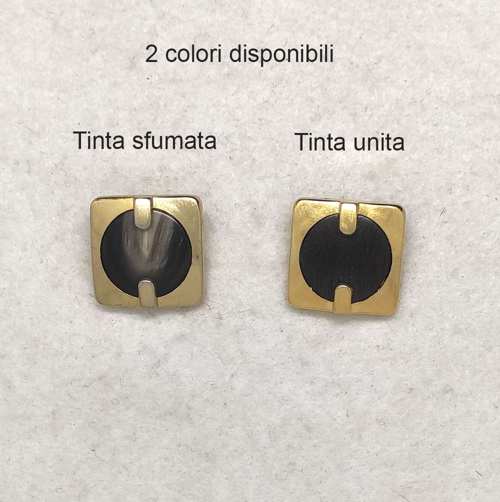 I bottoni sono disponibili in due colori. Uno di colore marrone molto scuro che alla vista sembra legno e l’altro è marrone scuro con sfumatura fino al beige. per tutte e due tipi di bottone la scocca è di color oro e marchiata sul fondo dal produttore Ascoli