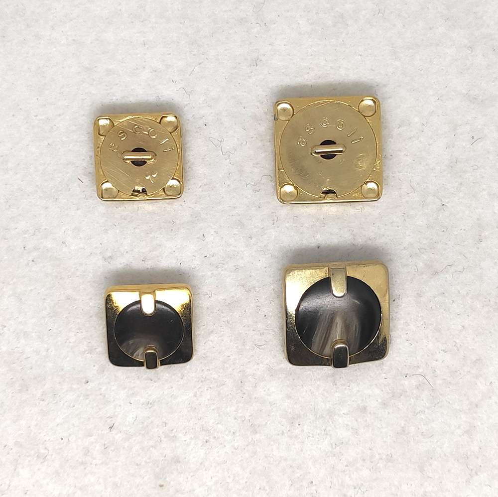 Questo bel bottone quadrato del bottonificio Ascoli dei primi anni 80 è assemblato con una parte di resina colorata per la pasticca frontale mentre per la base è utilizzata la resina denominata ABS adatta per la simulazione di metalli. Queto tipo di resina è veramente simile ai metalli ma è talmente leggera che si può usare anche stoffe molto leggere e sottili come le sete