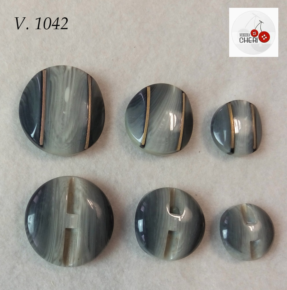 I bottoni venduti nella sezione vintage, sono articoli creati indicativamente nei periodi dichiarati che vanno da fine anni 60 a fine anni 90. Per tale motivo i bottoni possono avere alcune imperfezioni come micro incisioni, patine di ossidazione delle resine ( rimovibili facilmente) e traccia di polvere. I piccoli difetti sono tipici dello sbatter dei bottoni fra loro nelle scatole di vendita che sono state maneggiate nel nostro negozio per circa 60/50 anni.