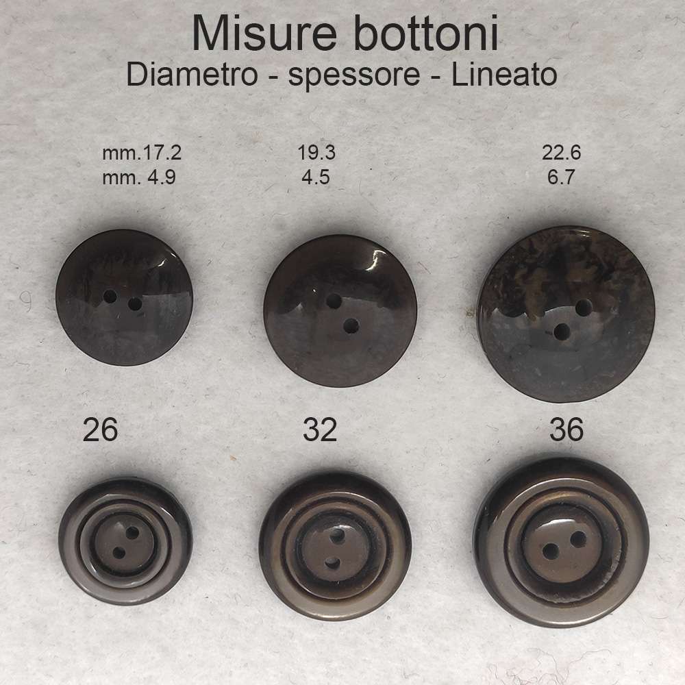 I bottoni venduti nella sezione vintage, sono articoli creati indicativamente nei periodi dichiarati che vanno da fine anni 60 a fine anni 90. Per tale motivo i bottoni possono avere alcune imperfezioni come micro incisioni, patine di ossidazione delle resine (rimovibili facilmente) e/o tracce di polvere. I piccoli difetti sono tipici dello sbatter dei bottoni fra loro nelle scatole di vendita che sono state maneggiate nel nostro negozio per circa 60/50 anni.