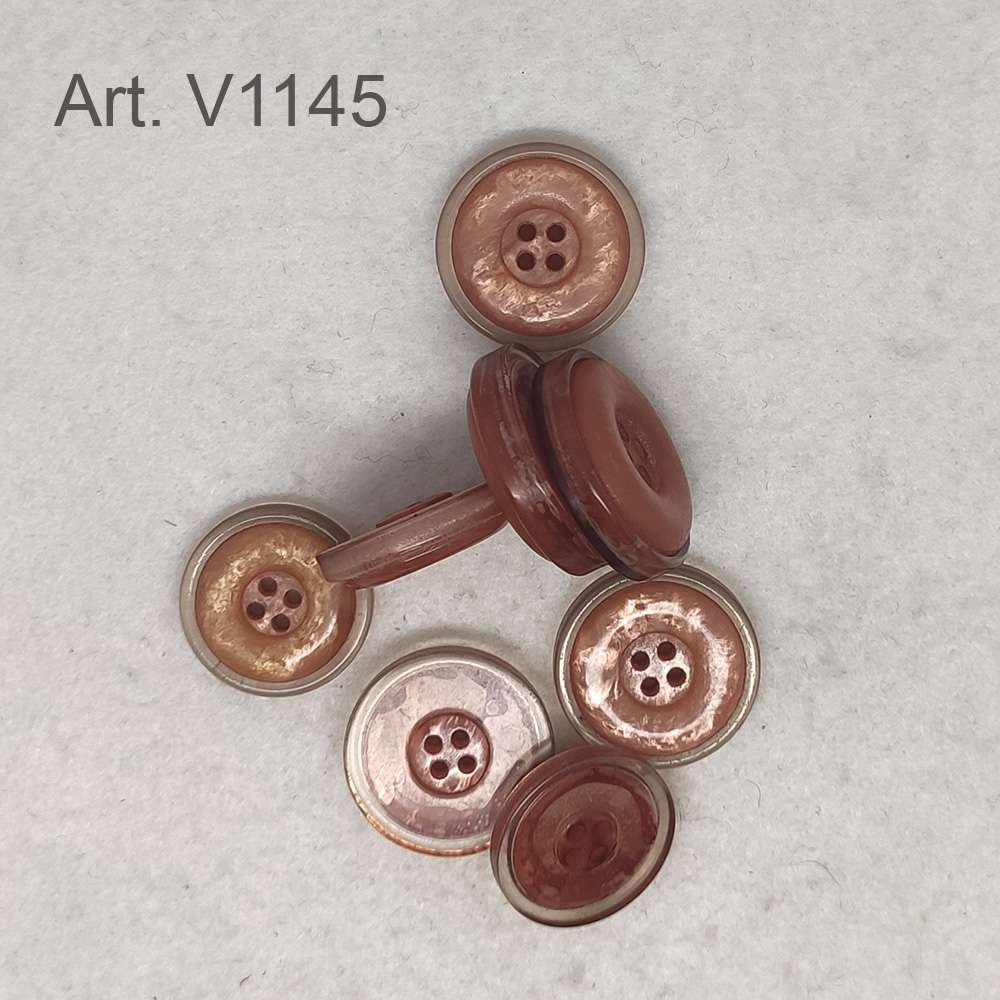 I bottoni venduti nella sezione vintage, sono articoli creati indicativamente nei periodi dichiarati che vanno da fine anni 60 a fine anni 90. Per tale motivo i bottoni possono avere alcune imperfezioni come micro incisioni, patine di ossidazione delle resine (rimovibili facilmente) e/o tracce di polvere. I piccoli difetti sono tipici dello sbatter dei bottoni fra loro nelle scatole di vendita che sono state maneggiate nel nostro negozio per circa 60/50 anni.