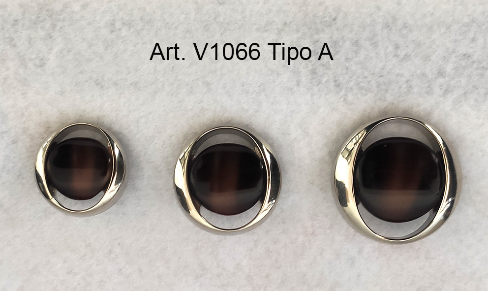- tipo A all’apparenza ovale è invece decisamente tondo. La parte inferiore è in ABS che riproduce l’effetto metallo. La parte anteriore è decisamente bella e caratterizzata dal foro centrale ovale che ospita il bottone tondo di resina dal colore marrone con sfumatura leggera al centro