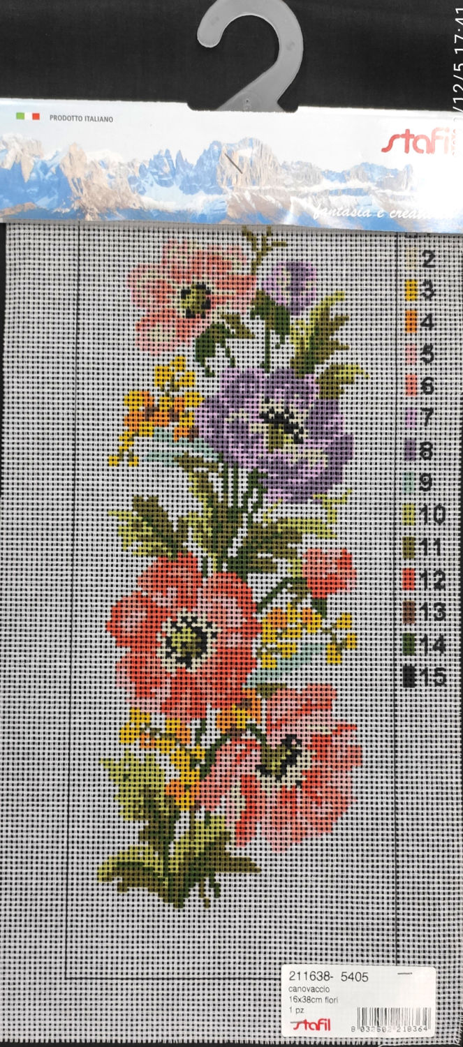 Canovaccio per ricamo a mezzo punto di una bella immagine di fiori  cm 16 x 38