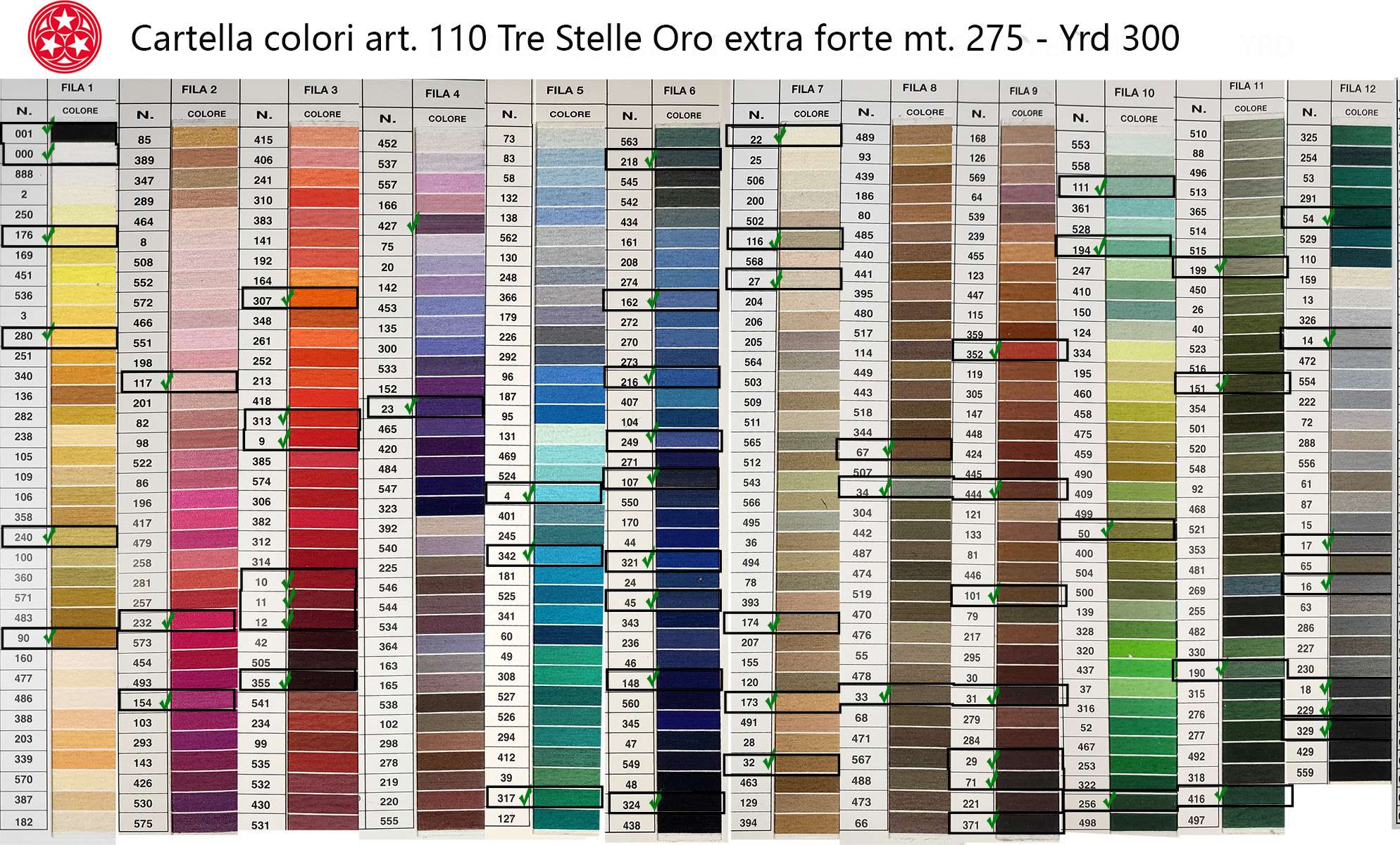 *NB: I colori nell’immagine sono abbastanza fedeli. Comunque bisogna tenere conto che foto, fotocopie e impostazioni monitor dei propri pc, tablet e smartphone possono alterare sensibilmente i colori. Nel box “seleziona colore” troverete solo i numeri della cartella colori contrassegnati dalla spunta verde e cerchiati di nero.