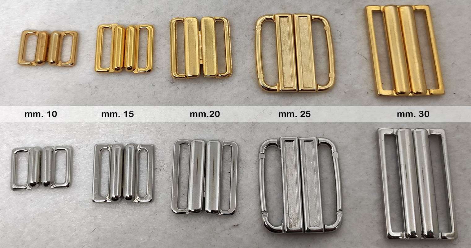 Questo prodotto è adatto a sostituire i ganci usurati o rotti di reggiseni e costumi da bagno. Grazie alla lega metallica laminata color oro o color argento si adatta specialmente a reggiseni con applicazioni di pailelttes, perline o altri abbellimenti metallici o di altro genere.
