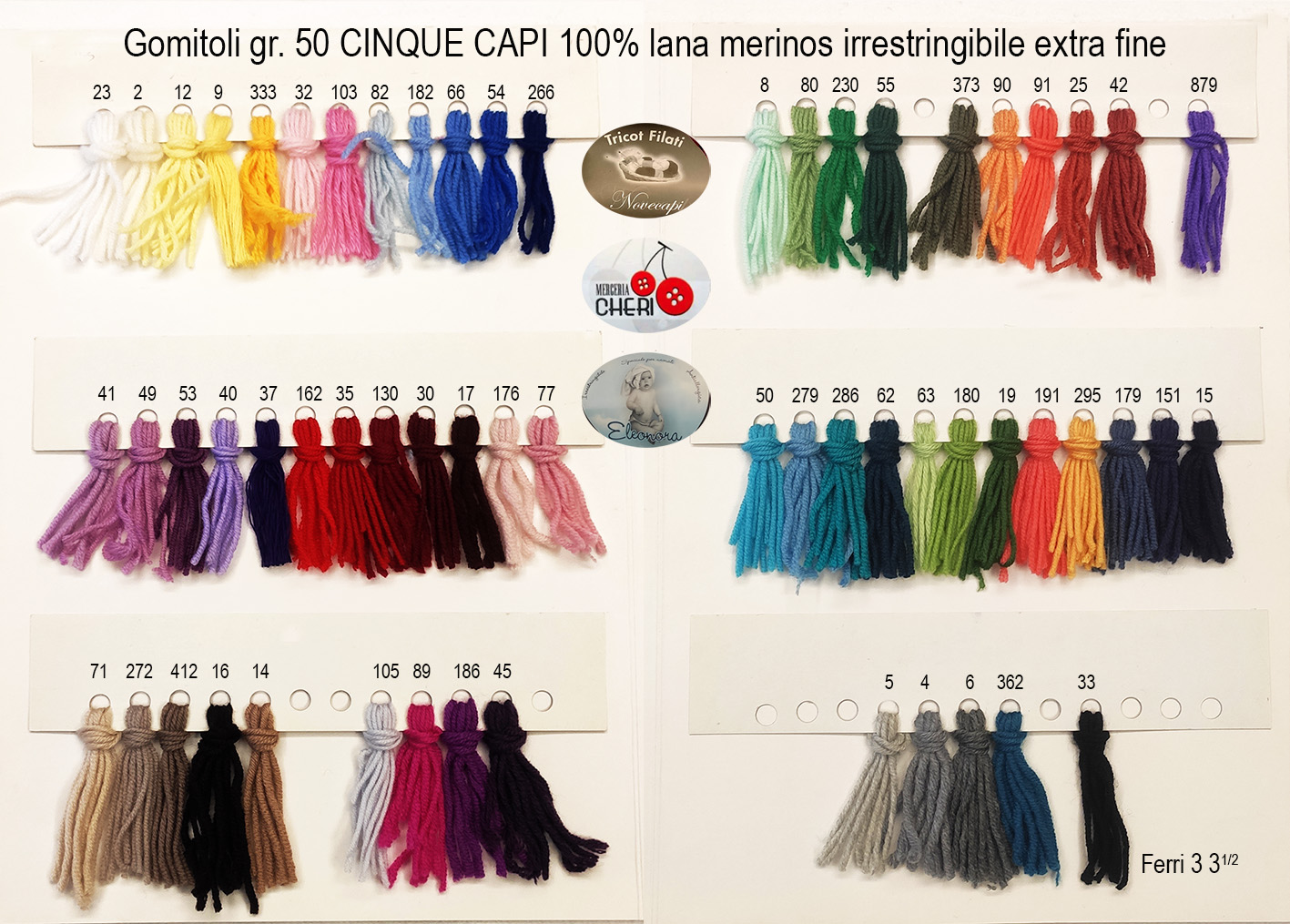*NB: I colori nell’immagine sono quelli reali della lana ma bisogna tenere conto che le foto, fotocopie impostazioni monitor dei pc smartphone e tablet possono alterare sensibilmente i colori.