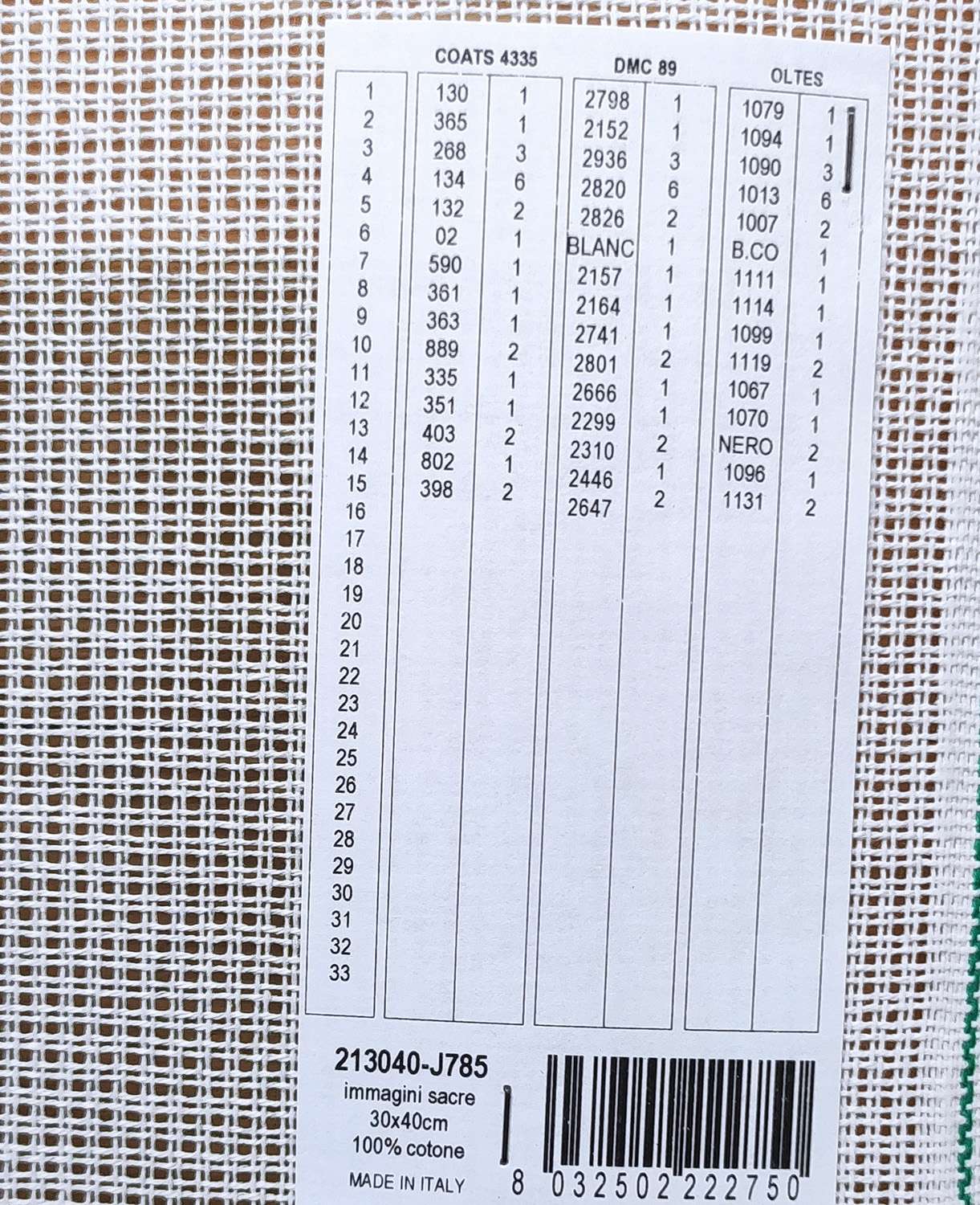 I filati da usare, le rispettive marche e colorazioni, sono elencate nell’etichetta posta sul retro sono aquistabili al seguente link :
