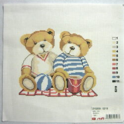 bella immagine di due orsetti prestampata su tela Aida simil canovaccio per ricamo a punto croce.