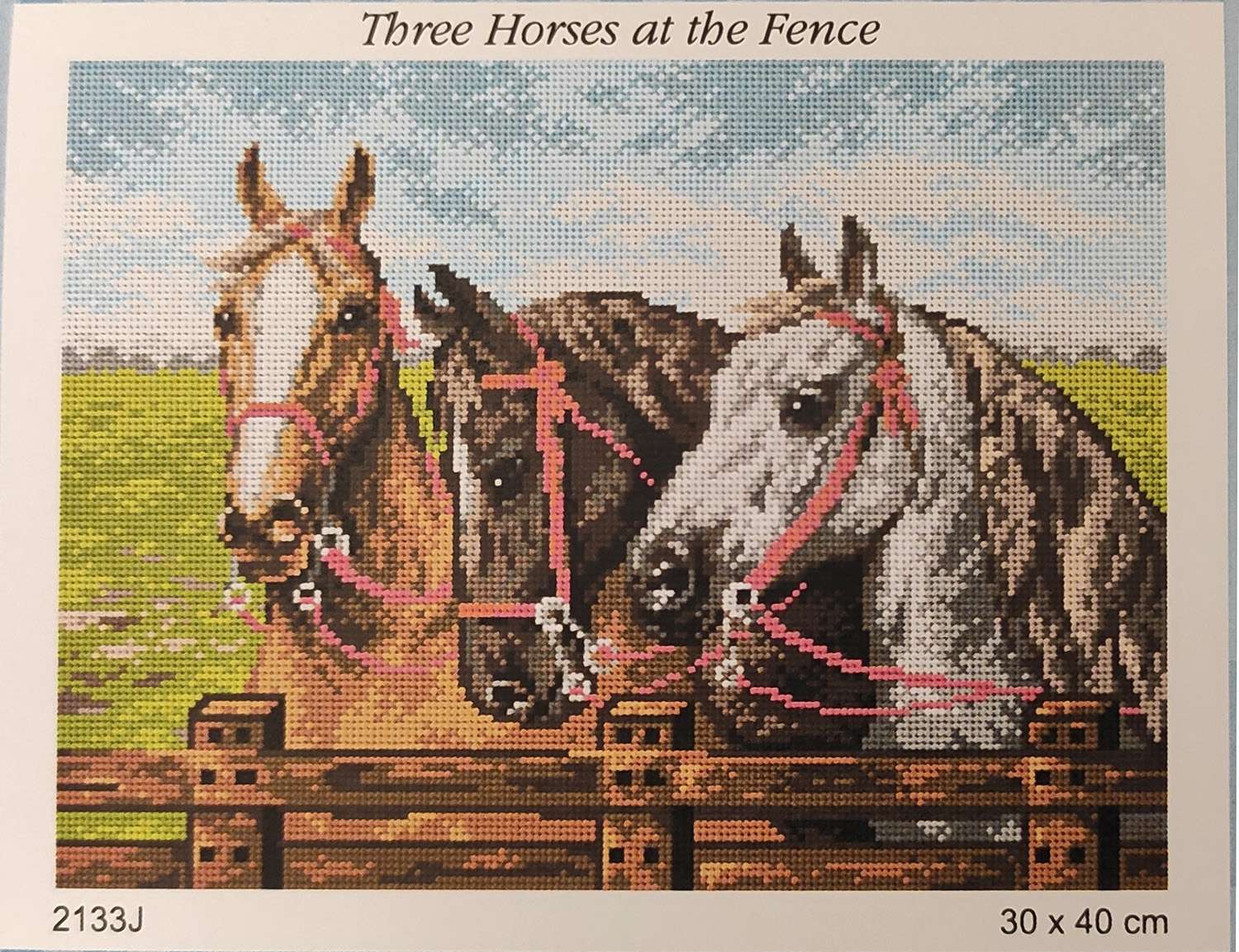 Orchidea collection, Art. 202016-2133J Canovaccio da ricamare a mezzo punto raffigurante TRE CAVALLI alla staccionata