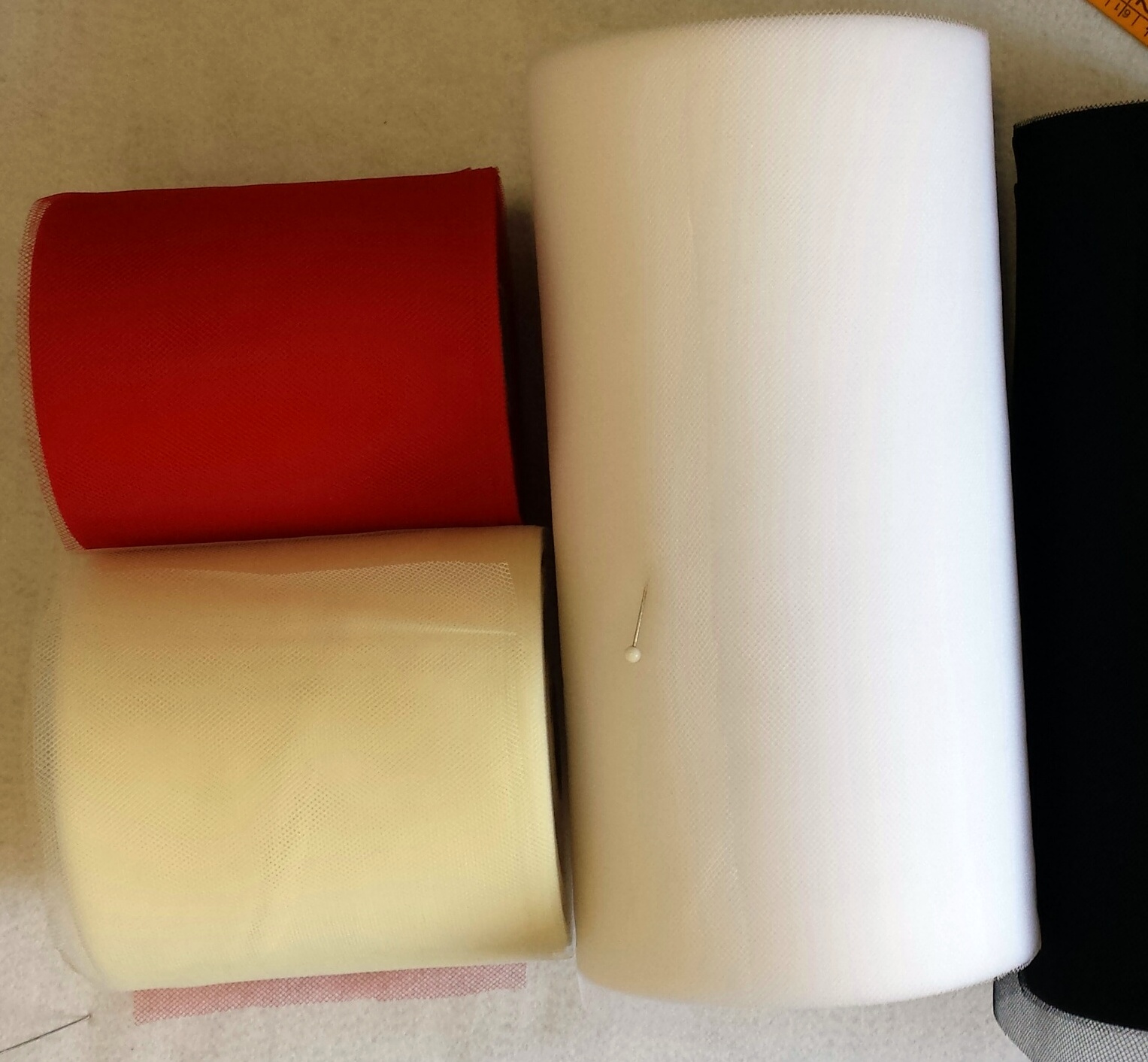 Nastro o fettuccia di tulle per applicazioni sartoriali su abiti da sposa o costumi da teatro e carnevale.