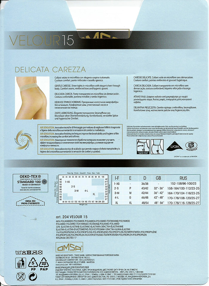 Innovative tecniche di fissinaggio permettono di migliorare l’effetto traspirante el’igiene della microfibra aumentando la sensazione di comfort e morbidezzavelour 15 omsa