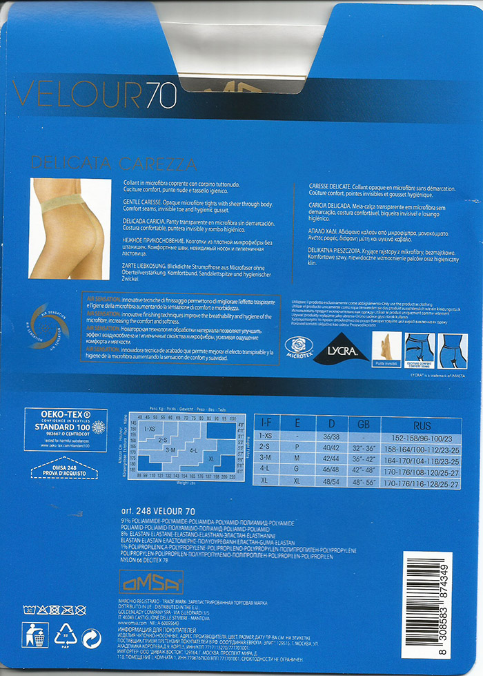 Omsa Velour 70 DEN collant in microfibra coprentecon corpino tutto nudo. Cuciture confort, punte nude e tassello igienico